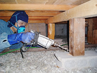 床下木部には防腐剤吹き付け処理を行います。