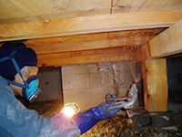 一般的に和室の畳を2畳ほどめくって作業します。 最近の住宅は、台所や脱衣所に床下収納が設置されている事が多いので、そこからはじめることが多いです。